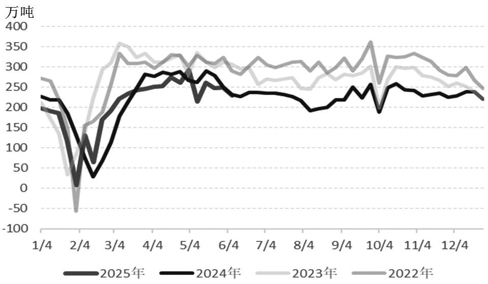 在房地产新开工面积大幅下滑、基建投资较快增长等因素共同影响之下,螺纹钢的现实需求持续下滑,但同比降幅收窄。上海钢联调研数据显示,当前螺纹钢周度表观需求为247万吨,环比小幅回落,同比下降12%。随着下游需求淡季到来,螺纹钢需求预计将呈现环比下滑的状态,但需求同比降幅预计持续收窄。