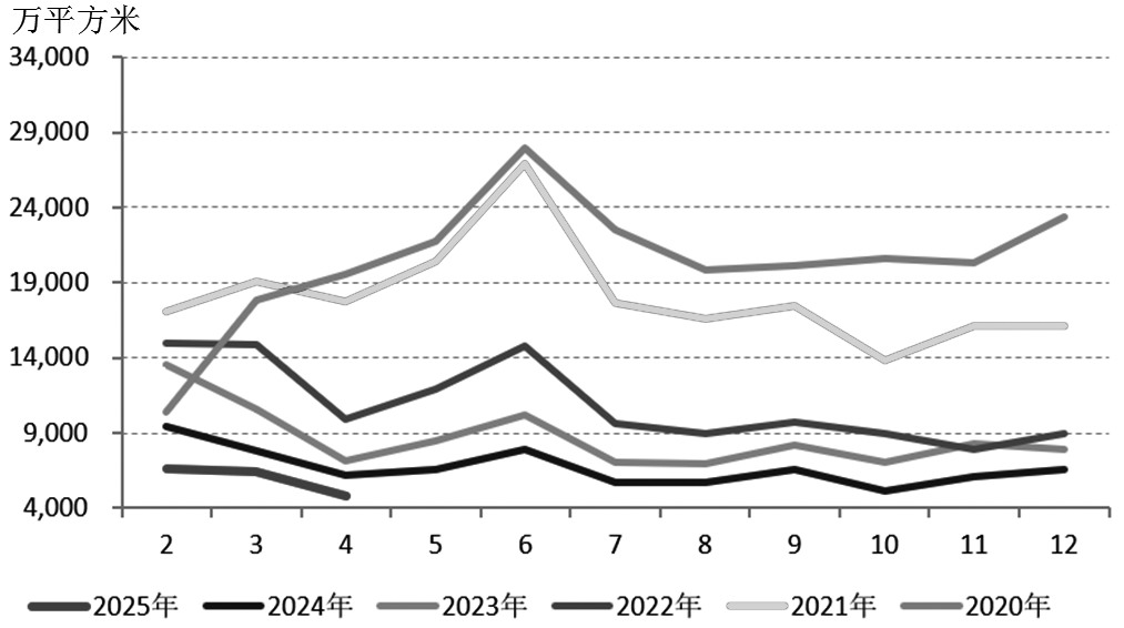 图为月度房地产新开工面积
