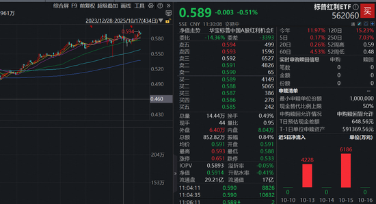 “能追牛、能扛熊”的标普A股红利指数领衔主流红利指数,连续两个交易日(10.15、10.16)创新高,稳稳站上5日均线,跟踪该指数的A股红利热门标的——标普红利ETF(562060)同样续创新高,10.16日盘中一度上涨至0.594元,今年以来上涨12.16%*,截至10月17日午盘收盘微跌0.51%,彰显韧性。